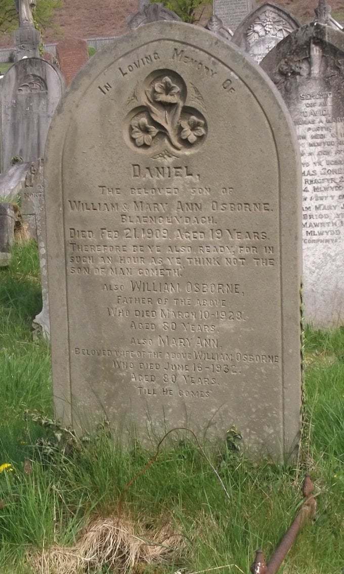 The grave of great great grandparents William and Mary Ann Osborne was perhaps the easiest to find – right next to one of the main paths.